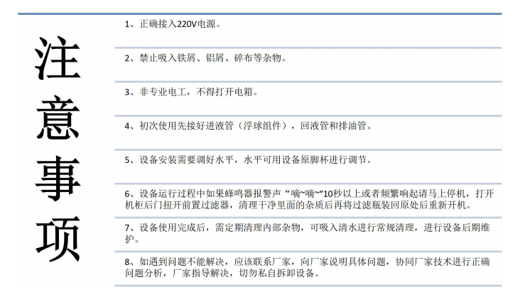 9、如發(fā)現(xiàn)泵吸力不足,需檢查氣壓大小。