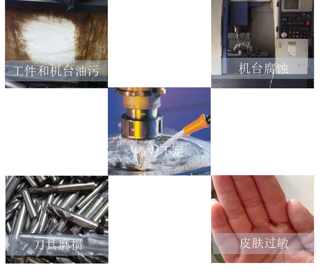 3、使切削液變得發(fā)粘,不僅冷卻性能下降,而且還產(chǎn)生難以清洗的物質(zhì),粘附在工件和機臺上;
