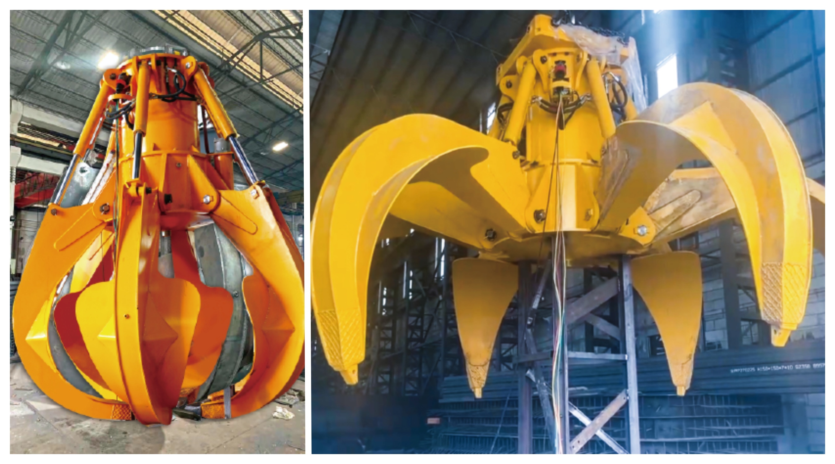 自主研制的大規(guī)格液壓抓斗,自帶電機(jī)、液壓泵等液壓系統(tǒng),可通過外部電源驅(qū)動(dòng)實(shí)現(xiàn)抓斗的開閉,能在各種惡劣環(huán)境下從事固廢垃圾、黃砂、煤炭、礦石等抓取、裝卸工作。